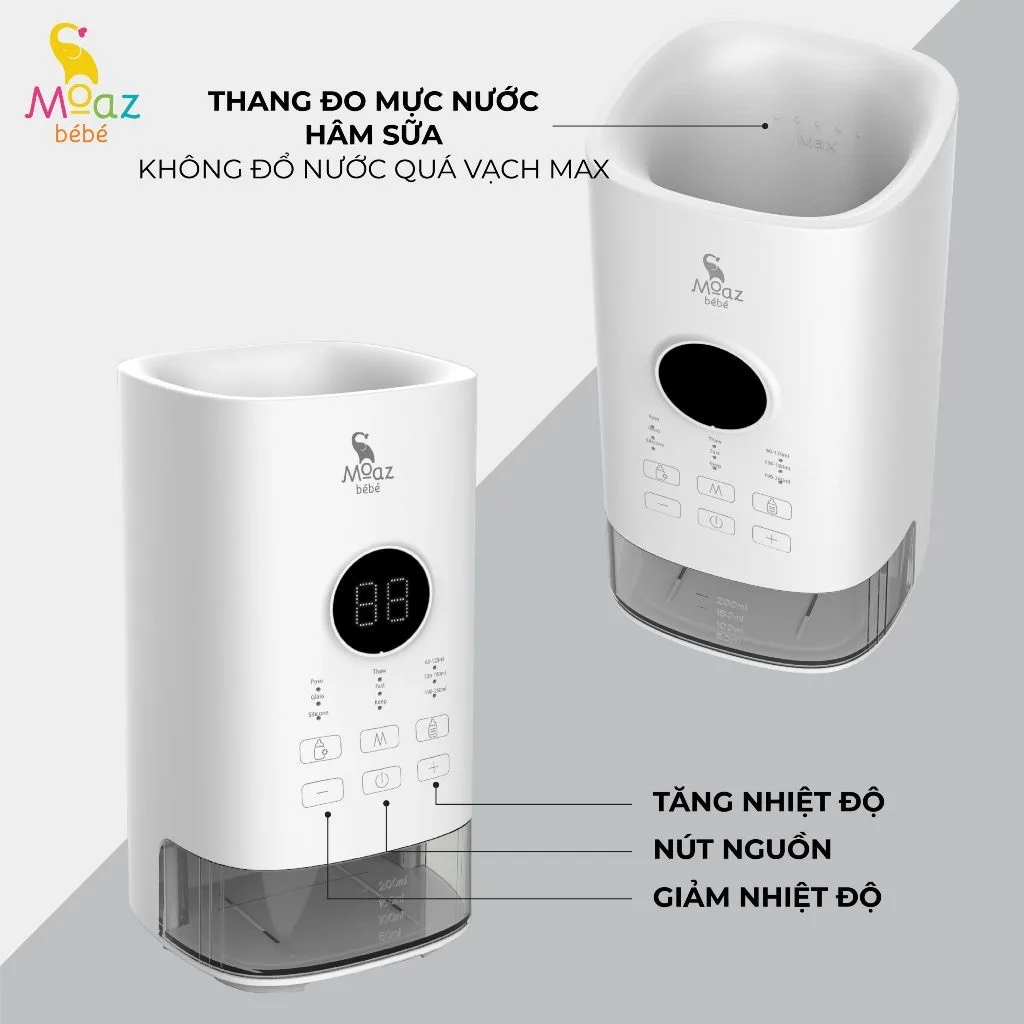 Máy hâm sữa Moaz giúp làm ấm sữa nhanh, đều nhiệt, không phá vỡ cấu trúc dinh dưỡng. Có thể hâm sữa, rã đông, giữ ấm cực tiện lợi.