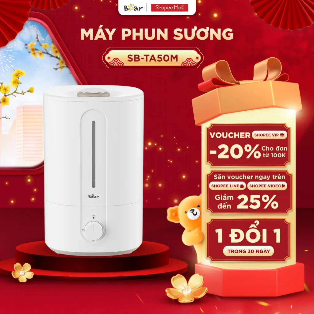 Máy tạo ẩm Bear giúp duy trì độ ẩm không khí, hạn chế khô mũi, khô họng cho bé, đặc biệt khi dùng điều hòa thường xuyên.